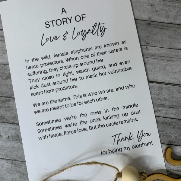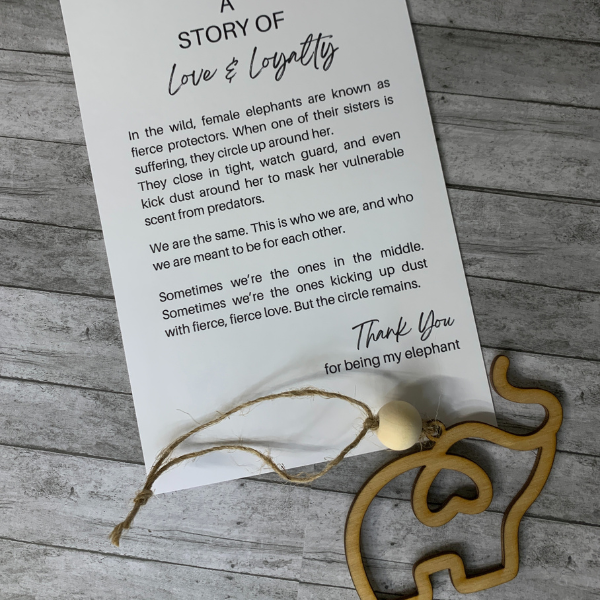 Hang it in your car, adorn your living space, or gift it to your closest tribe members. Let this beautiful elephant charm remind you of the incredible strength and connection you share with your friends or sisters. Embrace the power of friendship and cherish the lifelong bonds that make life truly extraordinary.